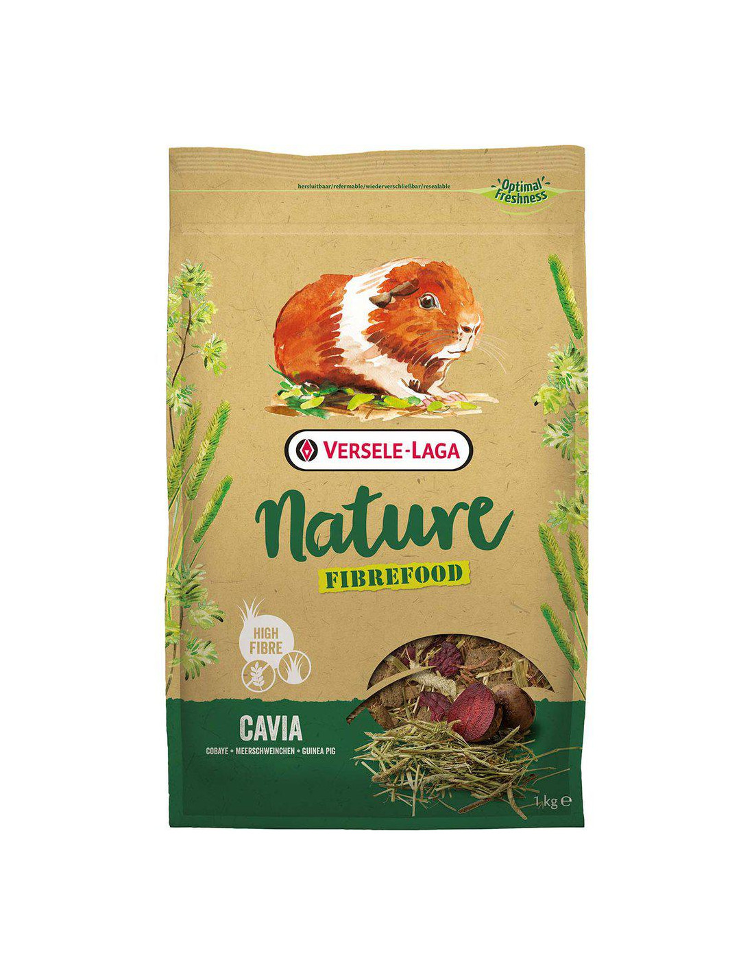 Sammansättning: Derivat av vegetabiliskt ursprung (gräs och örter 28%: timotej, kukfotgräs, engelskt rajgräs, slät ängsgräs, ängssvingel, långsvingel, vitklöver, rödklöver, ängskavle, svartkämpar, maskros, rölleka), grönsaker (ärtor 12,5%, rödbetor 5,5%, morötter 1,5%), frukt (nypon 1%), frön, vegetabiliska proteinextrakt, mineraler, FOS, ringblomma, MOS, alger, yucca Analytiska beståndsdelar: Protein 15,5%, fettinnehåll 3,0%, råfiber 17,5%, råaska 8,5%, kalcium 0,75%, fosfor 0,50% Tillsatser/kg; näringsmedel: Vitamin A 11375 IE, vitamin D3 1365 IE, vitamin E 91 mg, vitamin C 250 mg, 3b103 (järn) 113 mg, 3b202 (jod) 2,3 mg, E4 (koppar) 11 mg, 3b502 (mangan) 85 mg, 3b603 (zink) 80 mg, E8 (selen) 0,22 mg Användarinstruktioner: Beroende på storlek och ras rekommenderas en genomsnittlig daglig portion på 40 till 55 g för ett marsvin.
