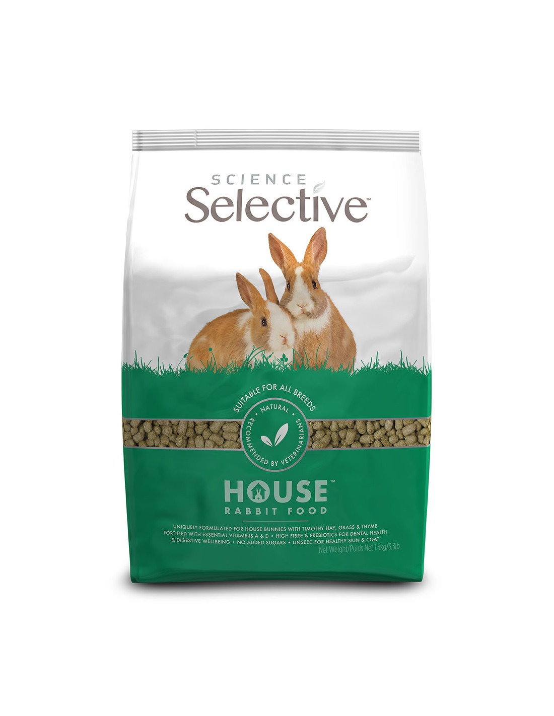 • Essentiellt vitamin A och D är tillsatt, inom huskaniner bildar inte D-vita min i solljus.