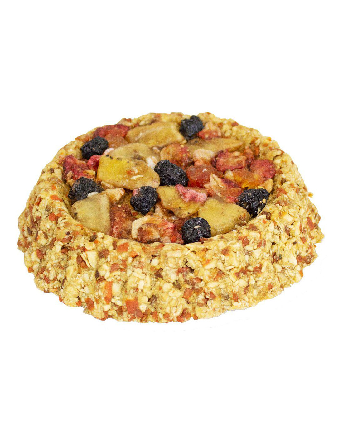 Kakan är gjord av morötter och palsternacka och är dekorerad med mängder av frukt och bär.