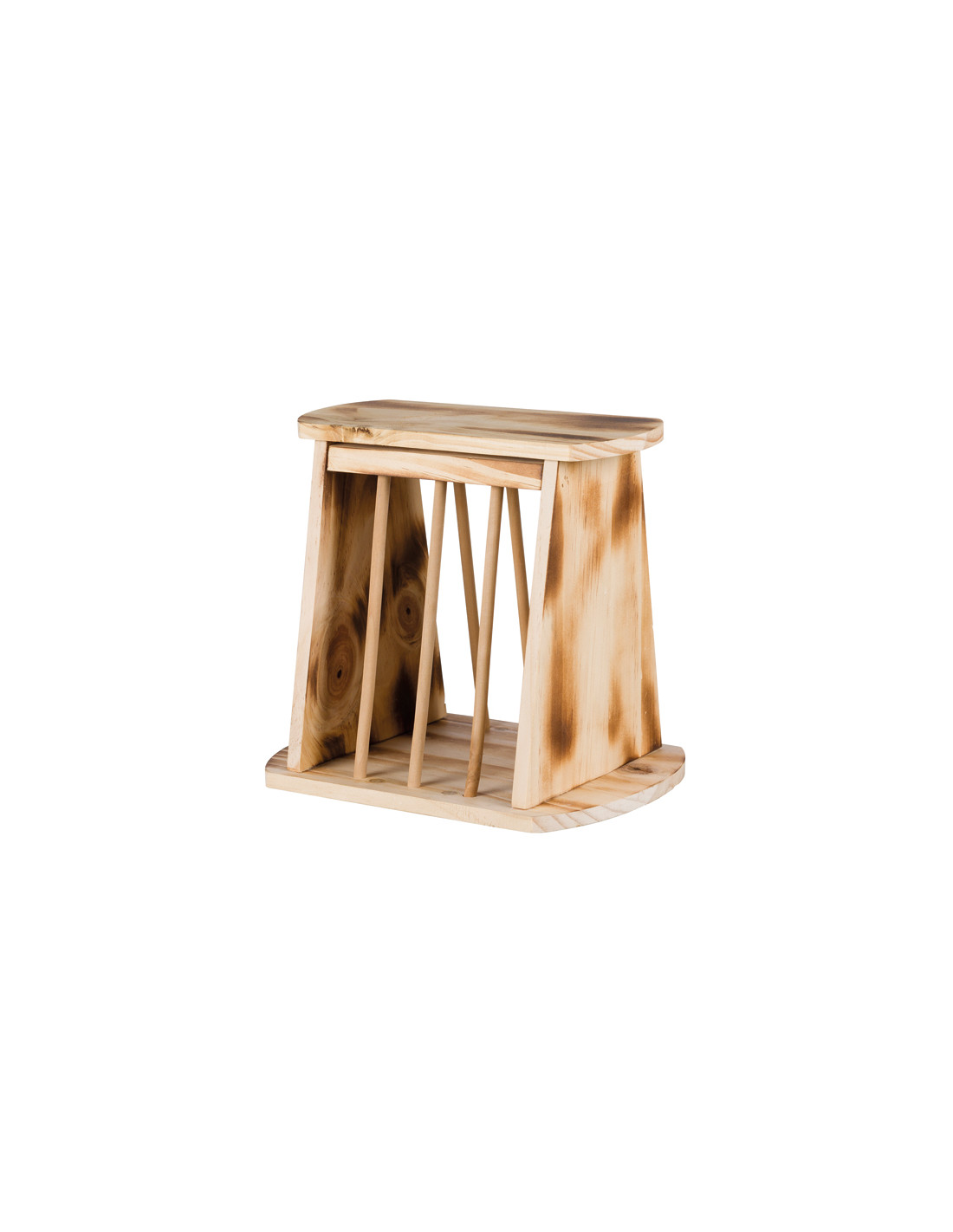 Höhäck i flamberad trä som kan fyllas med hö, gräs etc.