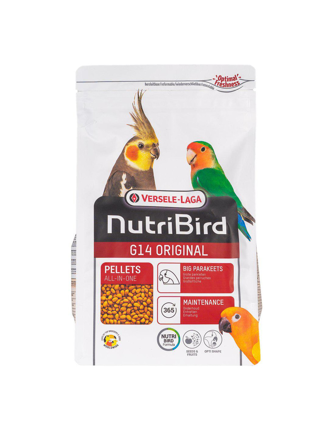 Vetenskapligt bevisad sammansättning med alla de näringsämnen dina fåglar behöver. Fullständigt konsumerbart, förhindrar selektivt ätbeteende.