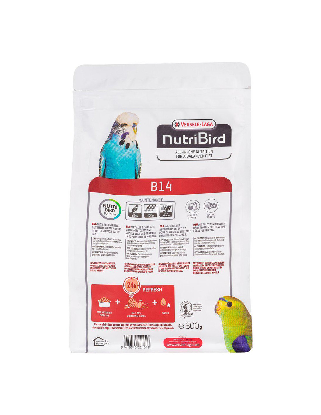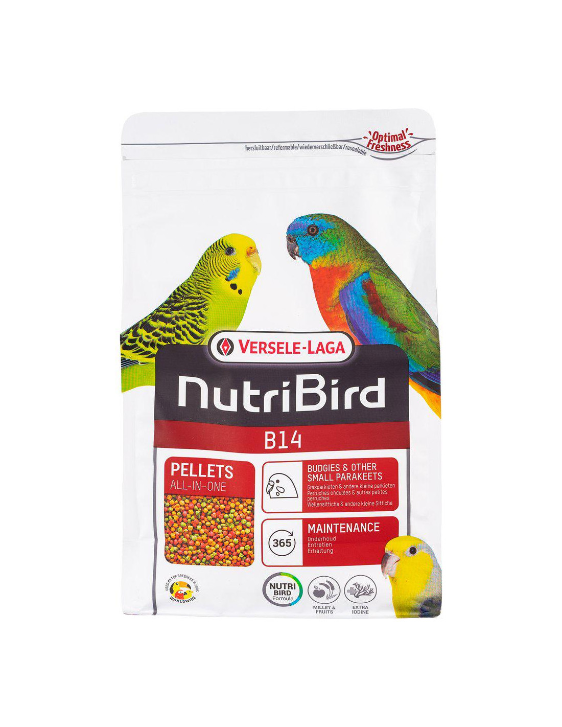 Vetenskapligt bevisad sammansättning med alla de näringsämnen dina fåglar behöver. Fullständigt konsumerbart, förhindrar selektivt ätbeteende.