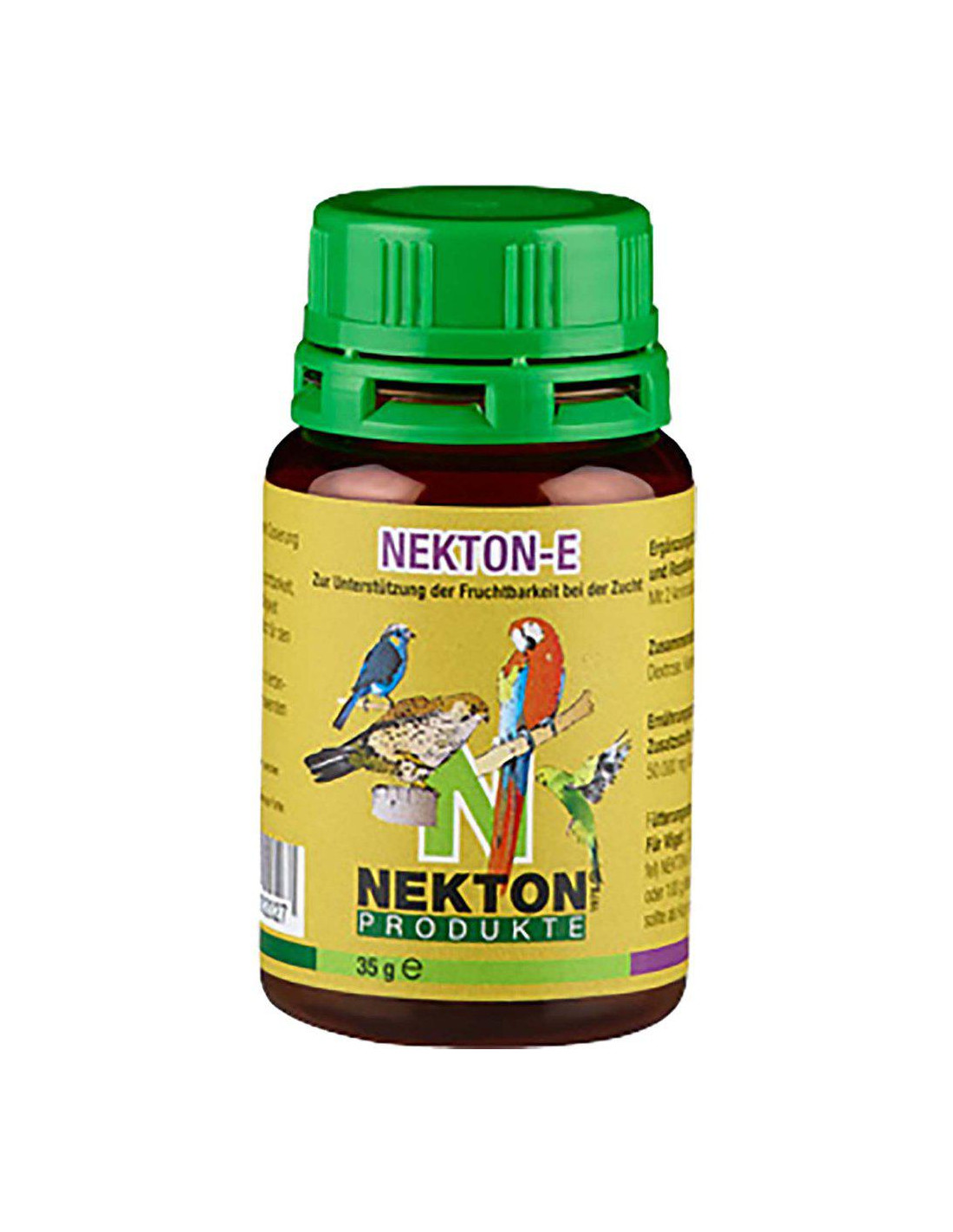 NEKTON-E har en positiv effekt på hela cellm etabolismen, produktionen av antikroppar, immunitet och försvar. NEKTON -E skyddar cellmembranen och bevarar livskraften hos cellerna i kroppsvävnaden. Det dekontaminerar skadliga ämnen som attackerar cellmetabolismen, är inblandad i cellandning och spelar en viktig roll i energimetabolismen. Stress orsakad av värme, kyla etc så väl som invärtes parasiter och infektionssjukdomar kräver en större tillförsel av vitamin E. Vitamin E är också oerhört viktigt för att bygga upp hormoner och brist på det kan orsaka minskad fertilitet, sexdrift och kläckning. Brist på vitamin E försämrar speciellt musklerna (vit muskelsjukdom), hjärtfunktionen och hälsan hos hjärna, lever, könskörtlar, blodkärl och avkommor.