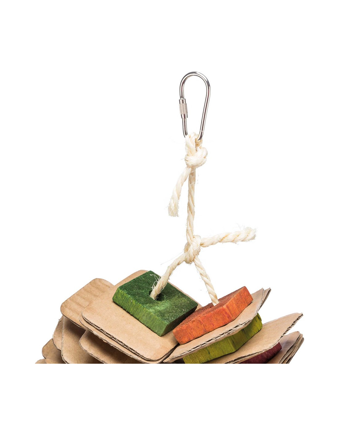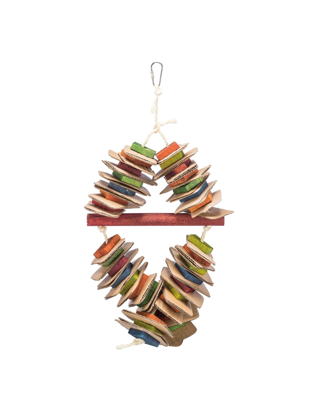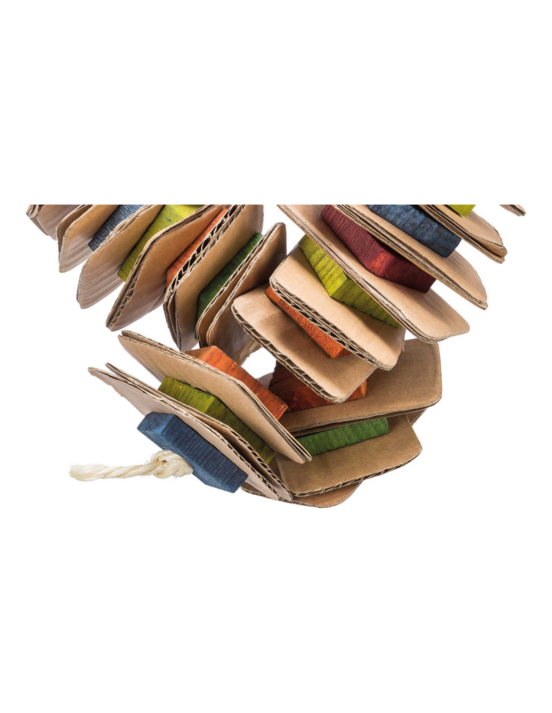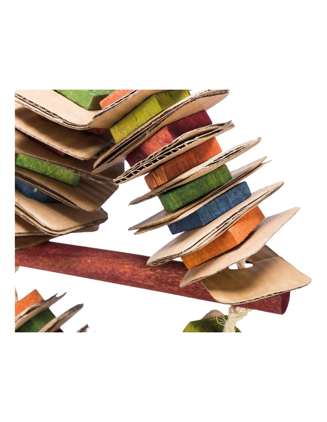 Fågelleksak gjord av trä och kartongplattor